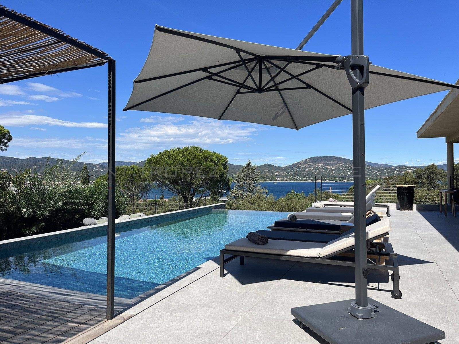 This property is situated in a sough after domain at the entrance of Saint Tropez.It benefits from a wonderful sea view. The villa is newbuilt and offers large bright rooms opening onto the outside space.
