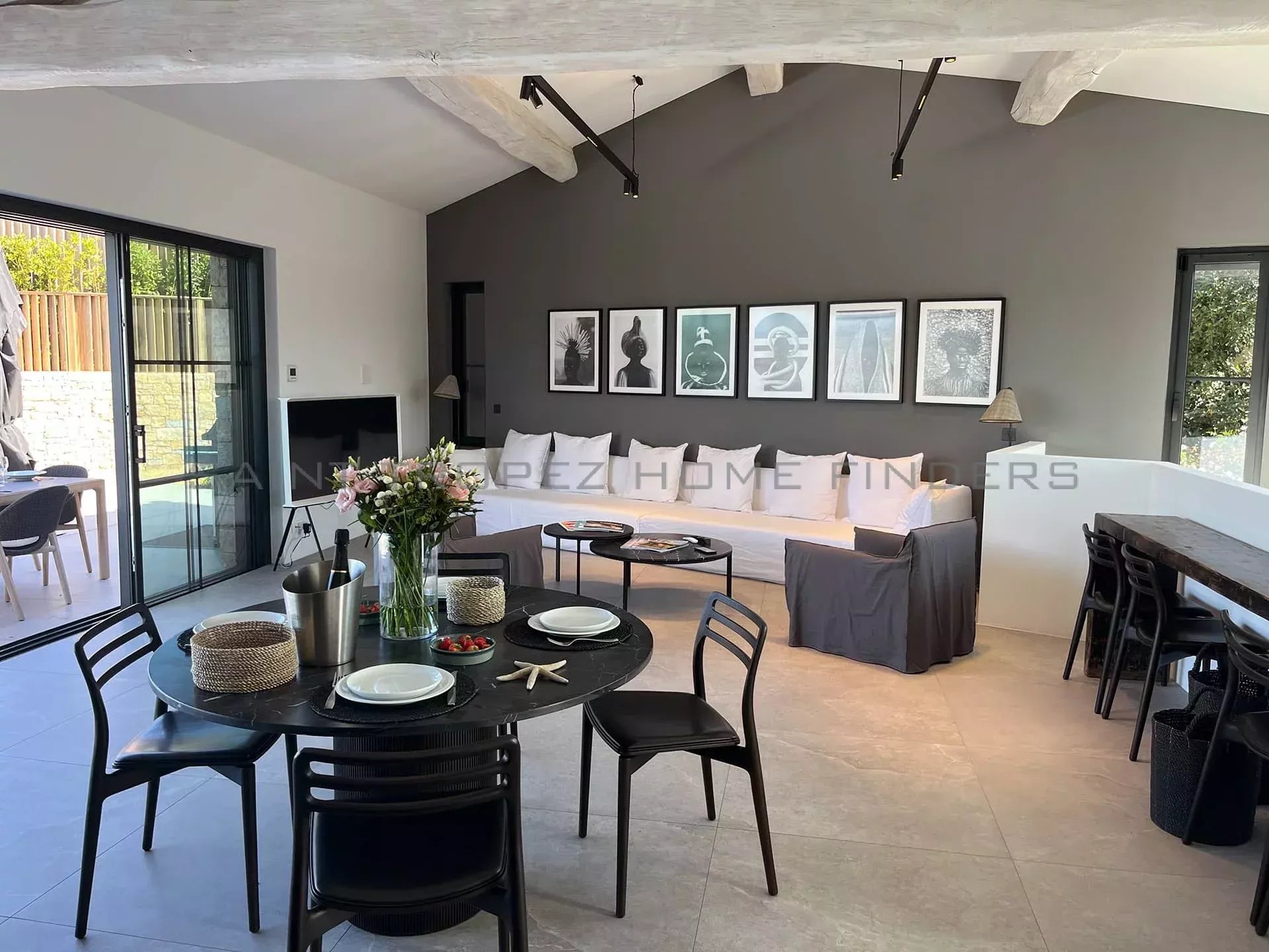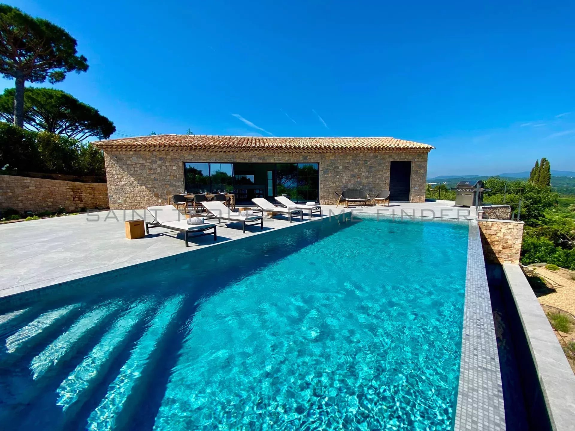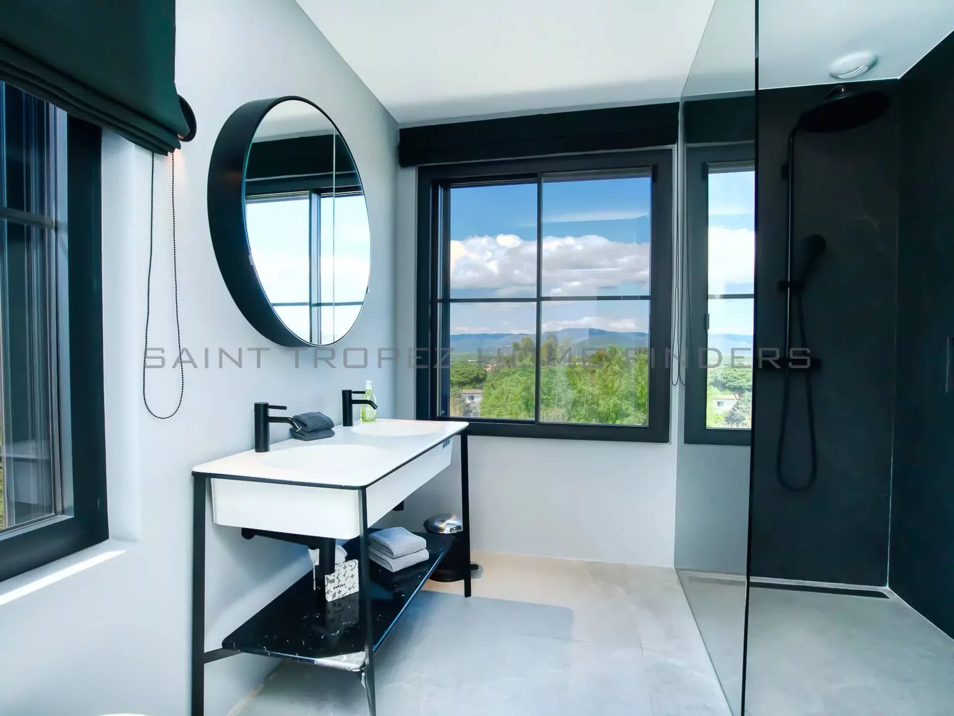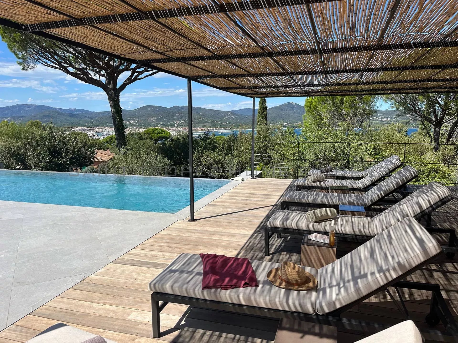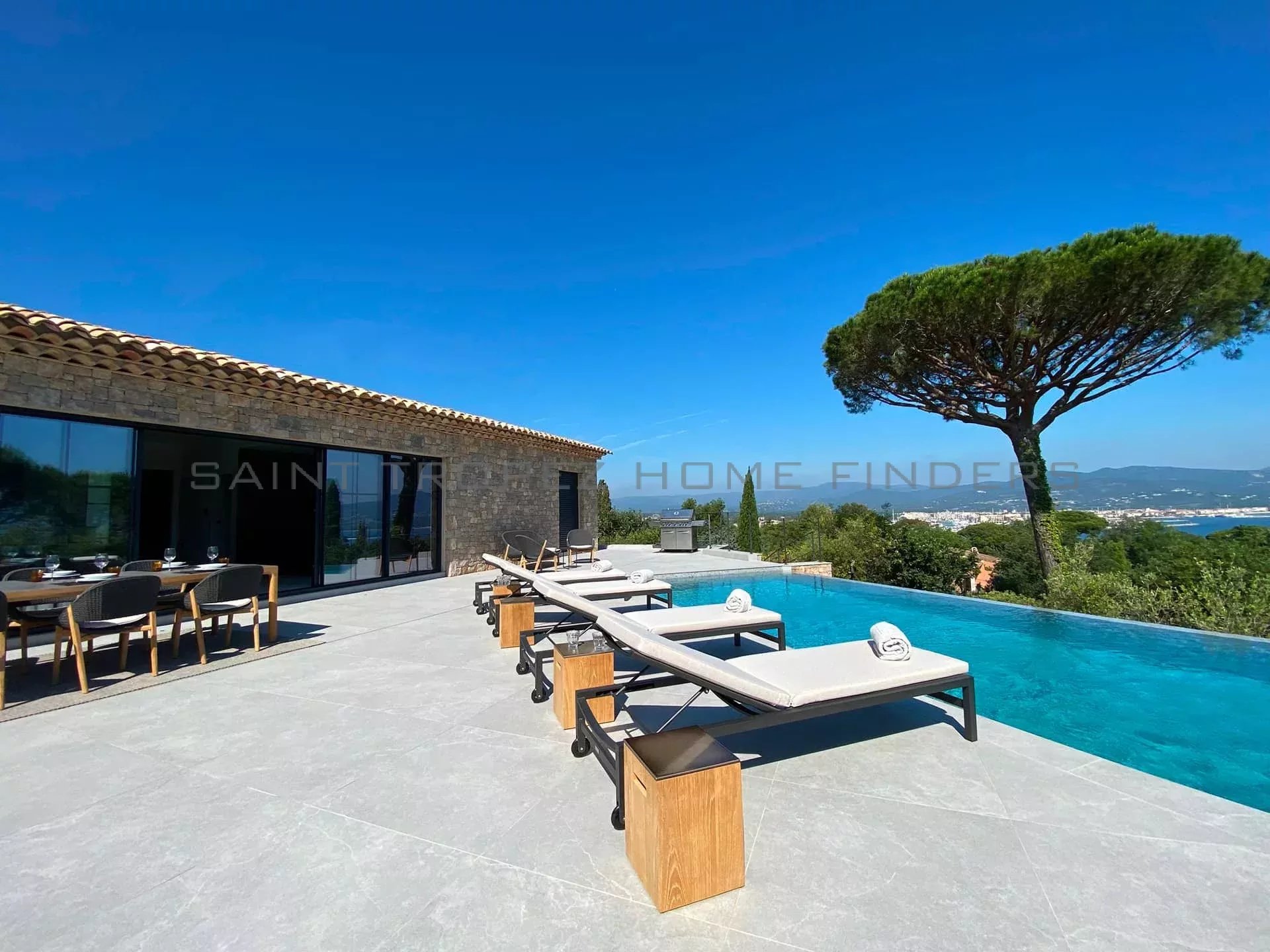 This property is situated in a sough after domain at the entrance of Saint Tropez.It benefits from a wonderful sea view. The villa is newbuilt and offers large bright rooms opening onto the outside space.