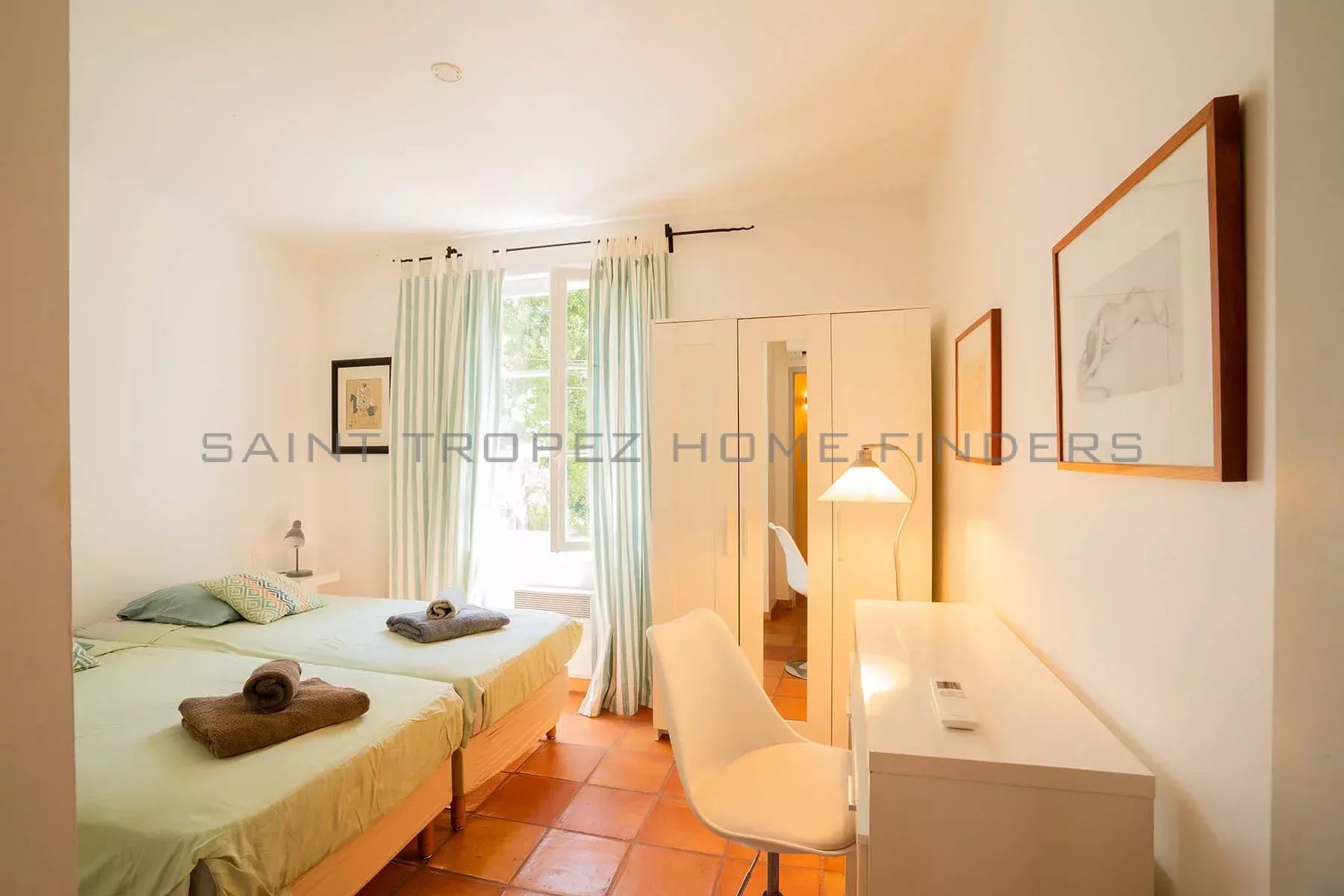 Cette propriété se situe dans une copropriété avec piscine commune, à pieds de la Place des Lices. Elle offre une vue mer de l’étage et une très belle terrasse privative et un stationnement. La maison, sur deux niveaux, est en bon état.